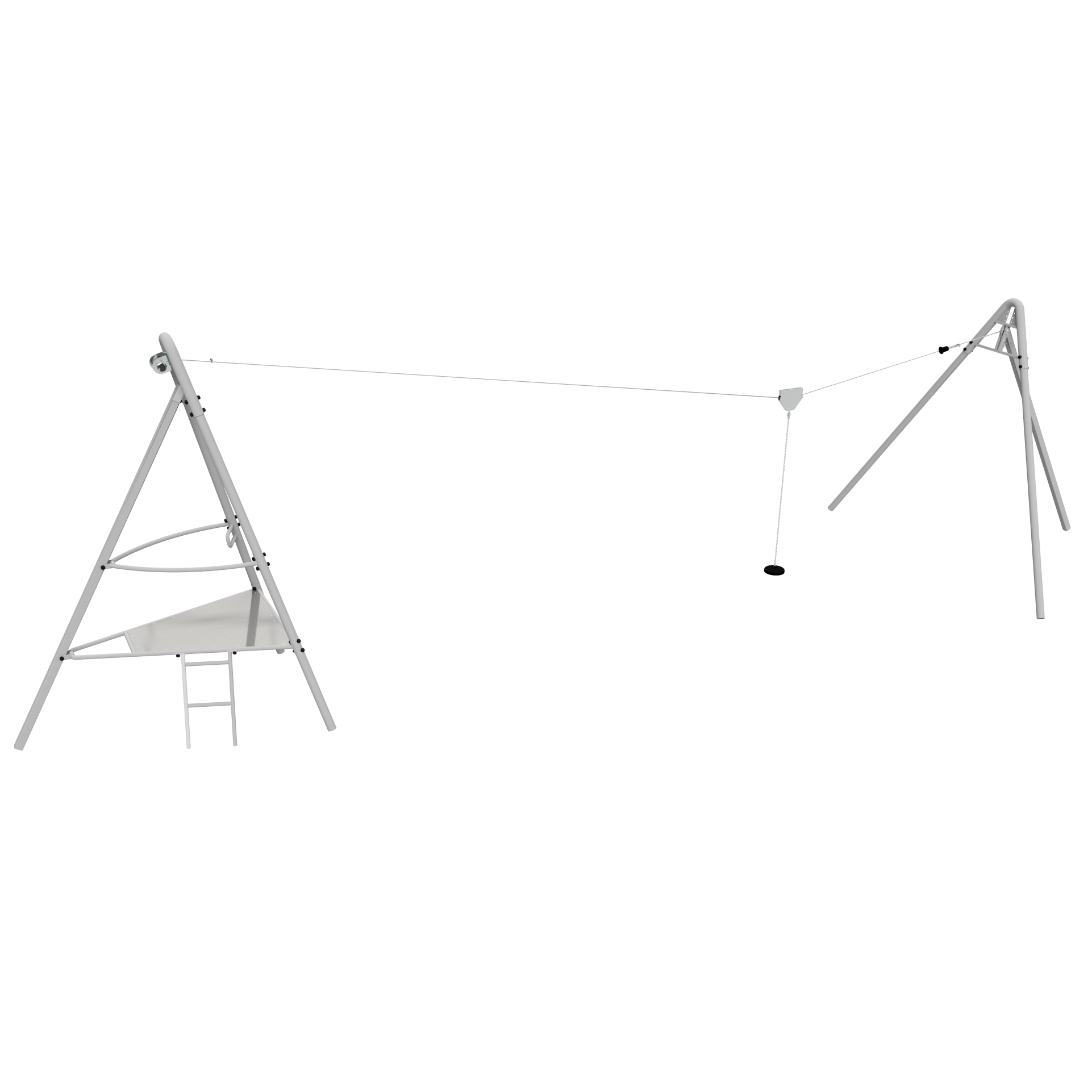 The equipment consists of two stable, solidly anchored towers connected by a high-strength steel cable along which a precisely manufactured stainless steel trolley travels. It guarantees a smooth and quiet ride. The tower construction is made of anti-corrosion protected tubes and profiles with powder coating, ensuring high corrosion resistance and durability regardless of weather conditions.