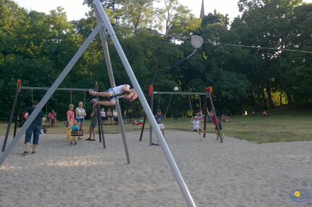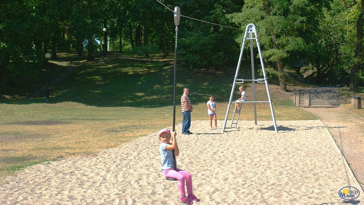 The Alpina cableway meets the requirements of EN 1176-1:2017/A1:2023 and EN 1176-4:2017/AC:2019, as confirmed by certificates issued by the accredited certification body TÜV SÜD. This ensures it can be safely used on public playgrounds as an exceptionally attractive recreational element.
