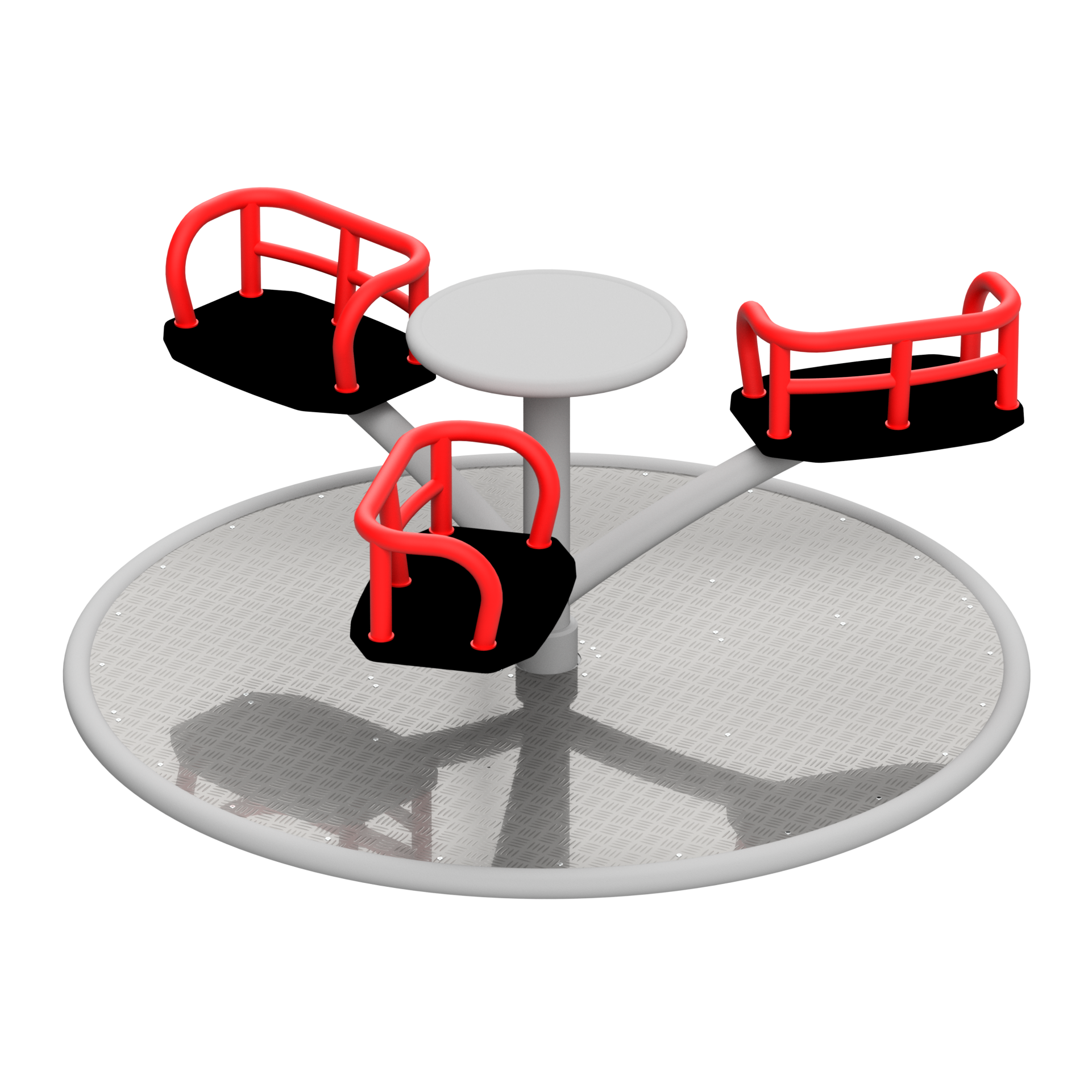 The Bora 3 carousel is made of steel with anti-corrosion treatment and powder coating, ensuring weather resistance and long-term durability. The simple, elegant structural form makes the equipment an excellent fit for both classic playgrounds and modern, carefully designed recreational spaces.