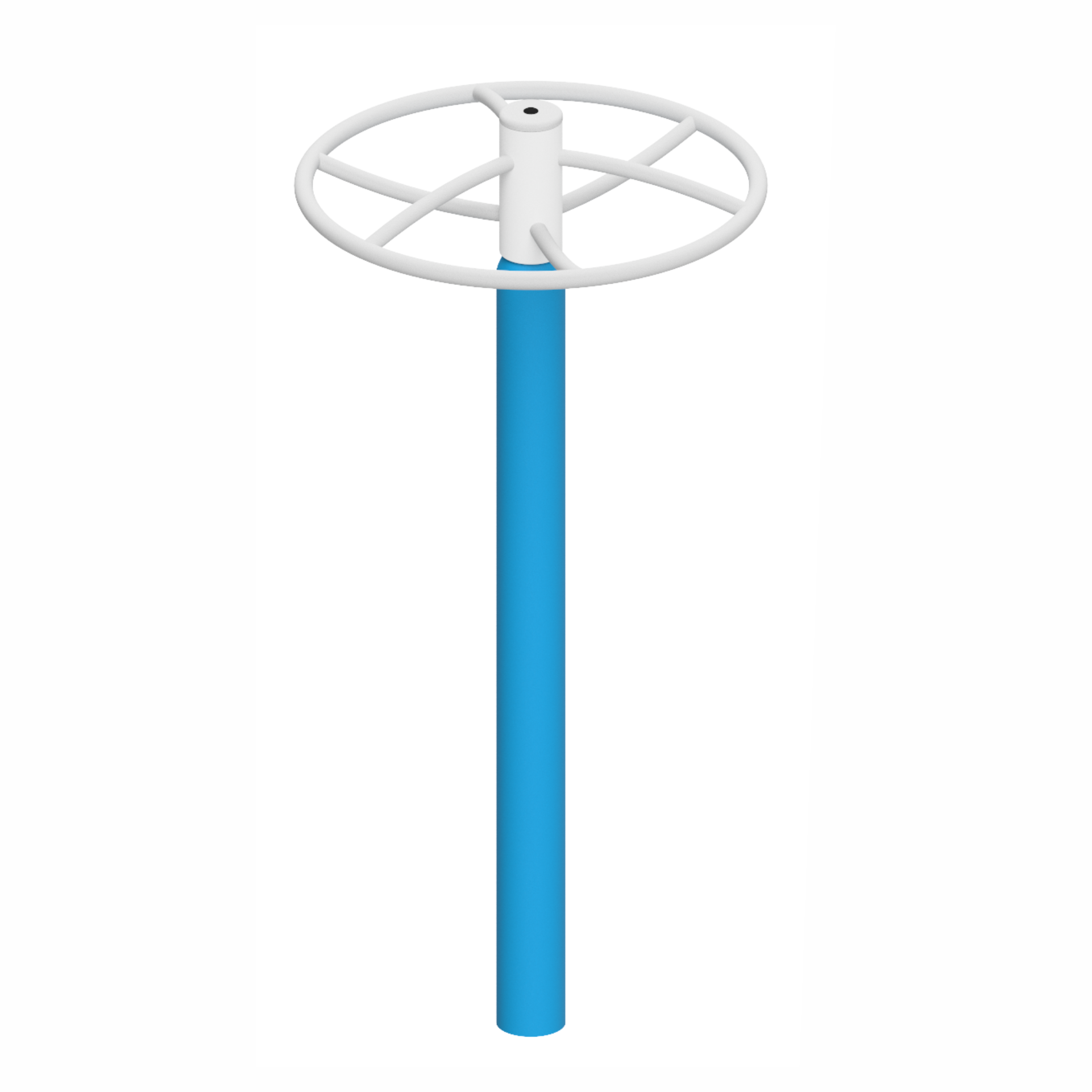 The Buran hanging carousel has been created for older children who enjoy challenges and active play requiring strength and good coordination. The equipment structure is based on a solid metal load-bearing post, at the top of which is a durable, round rotating element. The absence of handles means Buran engages users naturally – to set the equipment in motion, children use their own muscle strength, practising stabilization, balance and overall physical fitness.