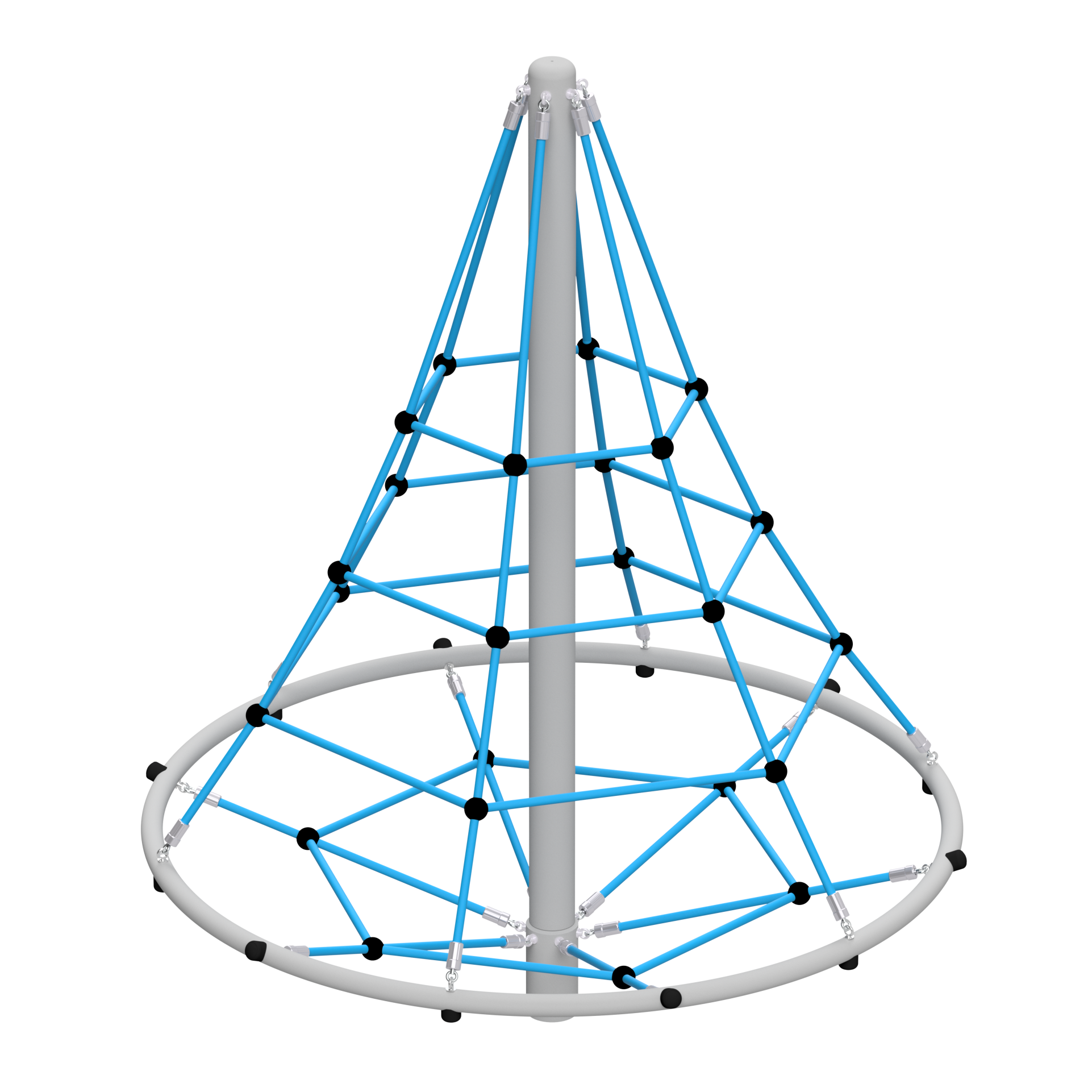 The base of the equipment is a solid central steel post on which the entire rope structure is mounted. In the lower section, a rotating ring is installed, allowing the entire structure to spin smoothly. This means the Kasprowy offers not only climbing but also dynamic rotational movement, further developing children’s coordination, balance, and overall physical fitness.