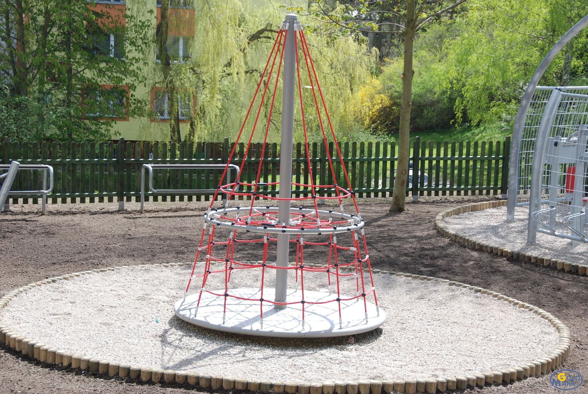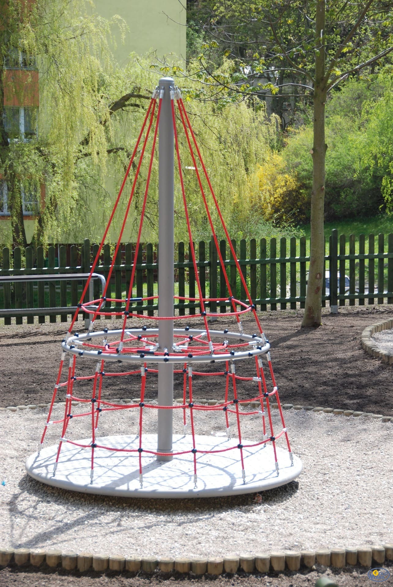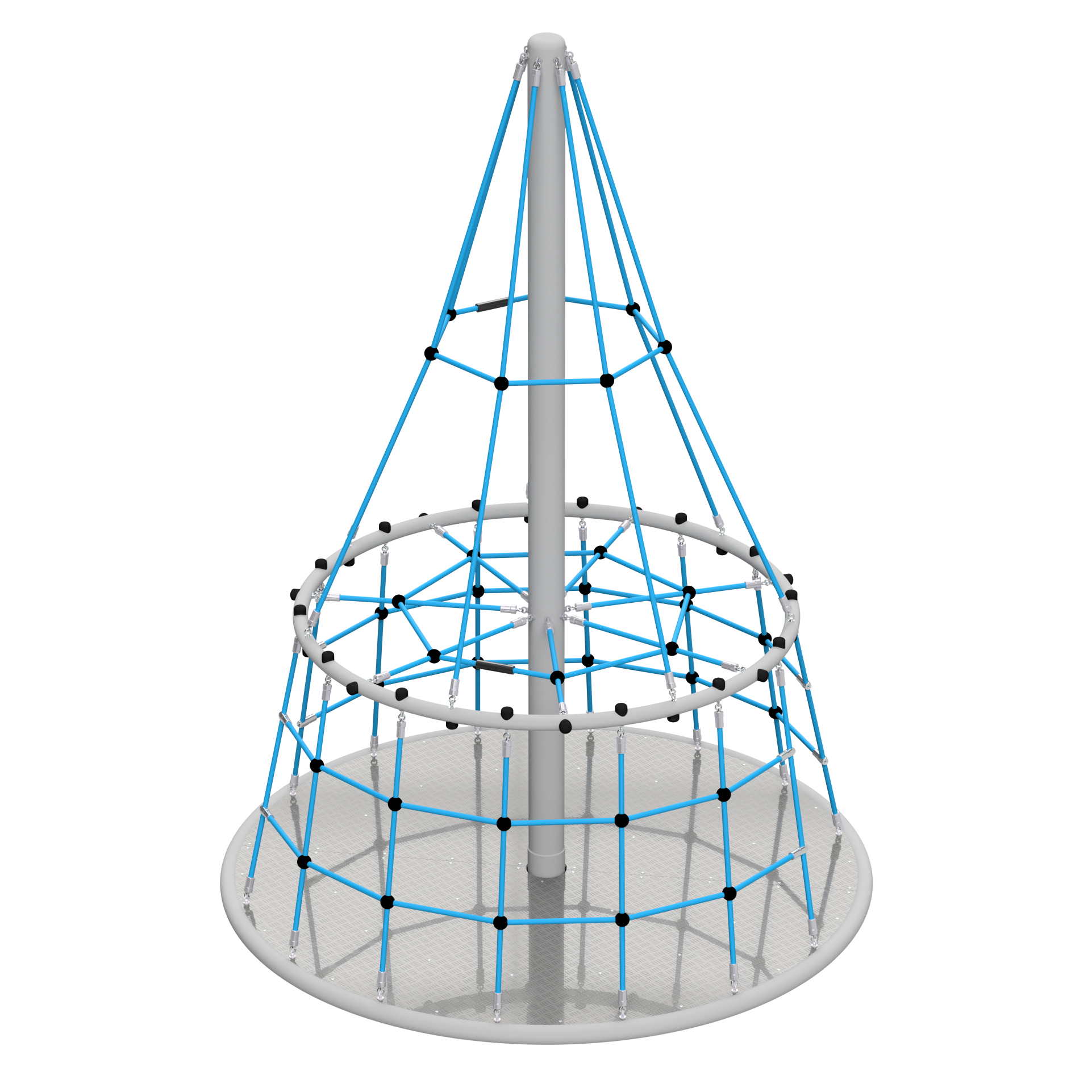 The entire structure is supported by a solid central post, serving as the key load-bearing element of the equipment. The rope system is made of durable polypropylene ropes with a steel core, ensuring high resistance to abrasion, weather conditions, and intensive use. These solutions guarantee safety and long-term durability while offering users extensive climbing possibilities – both on the outer ropes and inner structural segments.