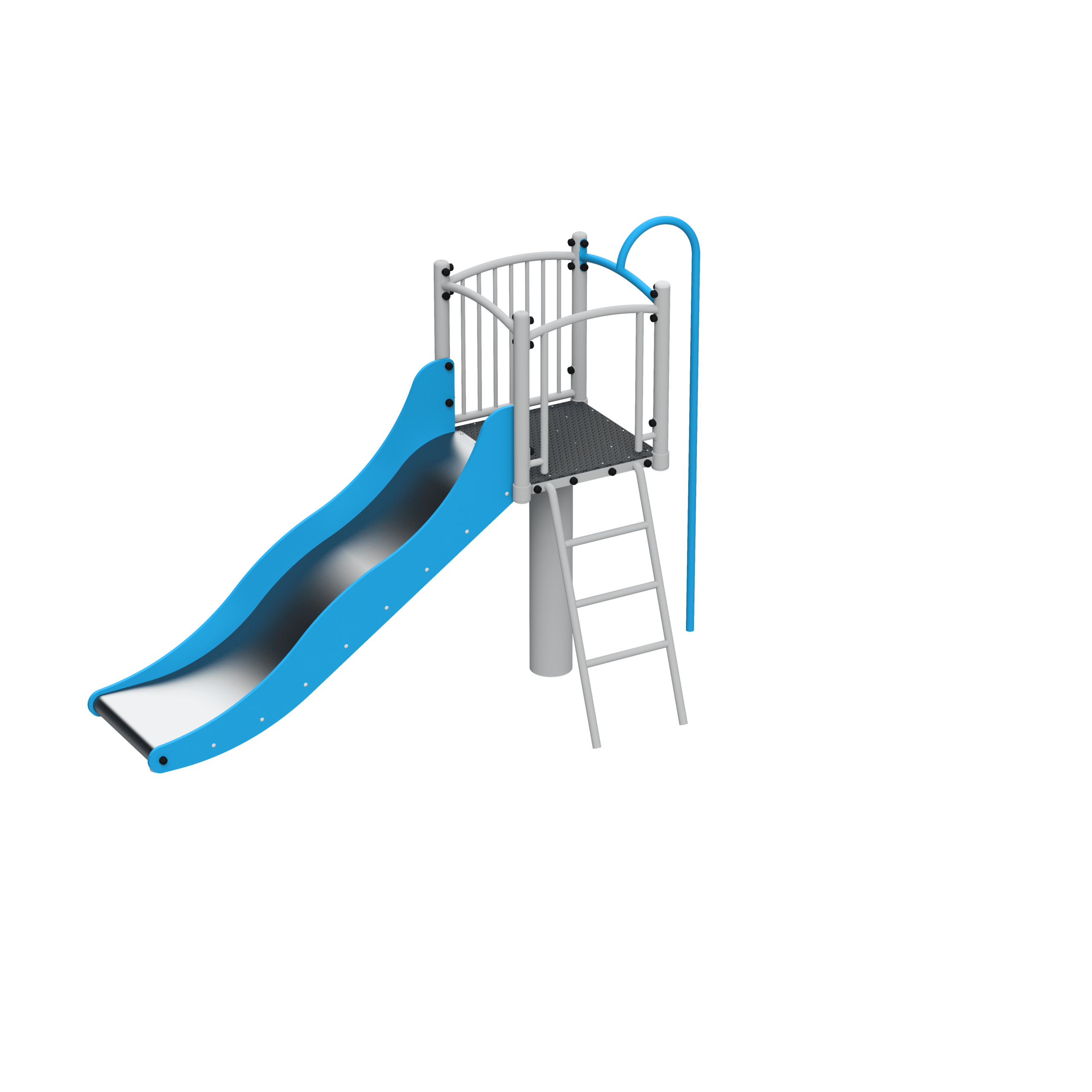 Apollo is a compact and functional play unit designed with younger playground users in mind. It combines all the essential elements of a classic play structure-platform, slide, ladder, and fireman’s pole-offering children a variety of activities within one small footprint.