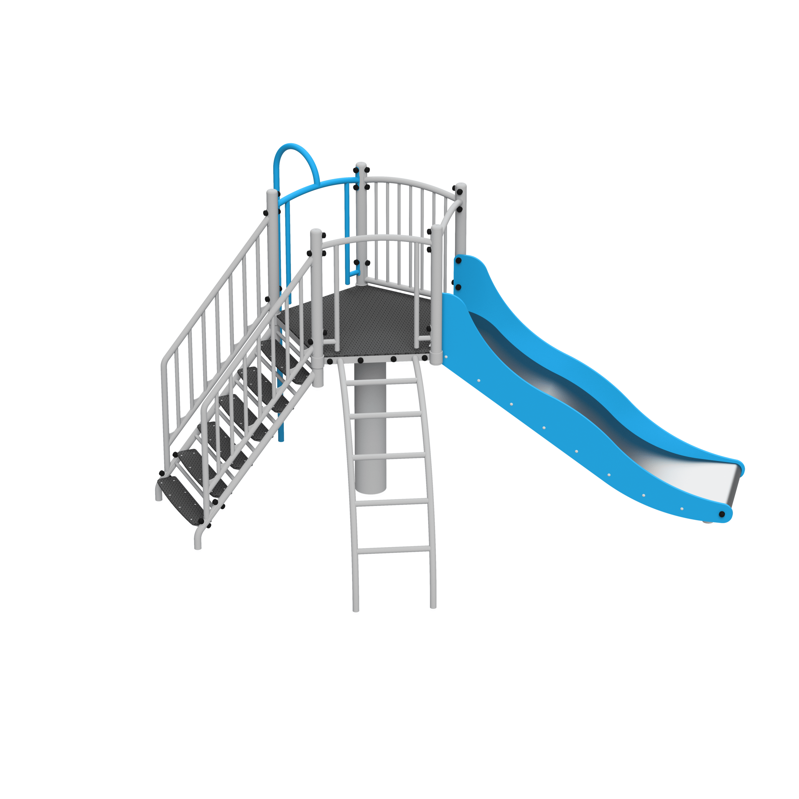 Orion is a compact, single-platform playground unit designed around a classic slide concept. It combines simplicity, functionality, and a high level of safety, offering versatile play opportunities within a small footprint.