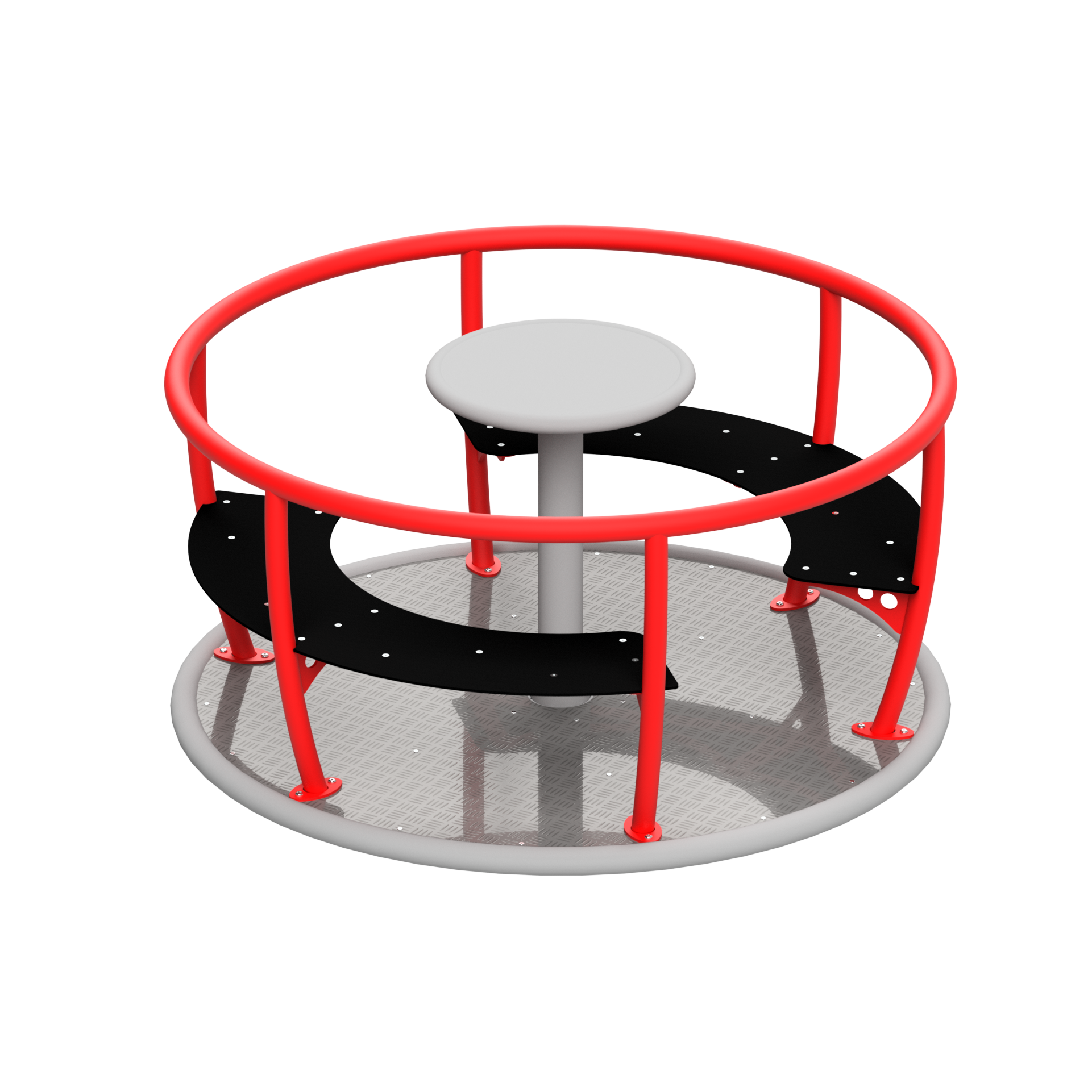 Samum 2 classic carousel with four seats is a 140 cm diameter carousel designed in a simple, modern style that blends perfectly with the aesthetics of contemporary playgrounds. Its structure is built as a closed, welded circle, ensuring stability, durability, and comfortable use.
