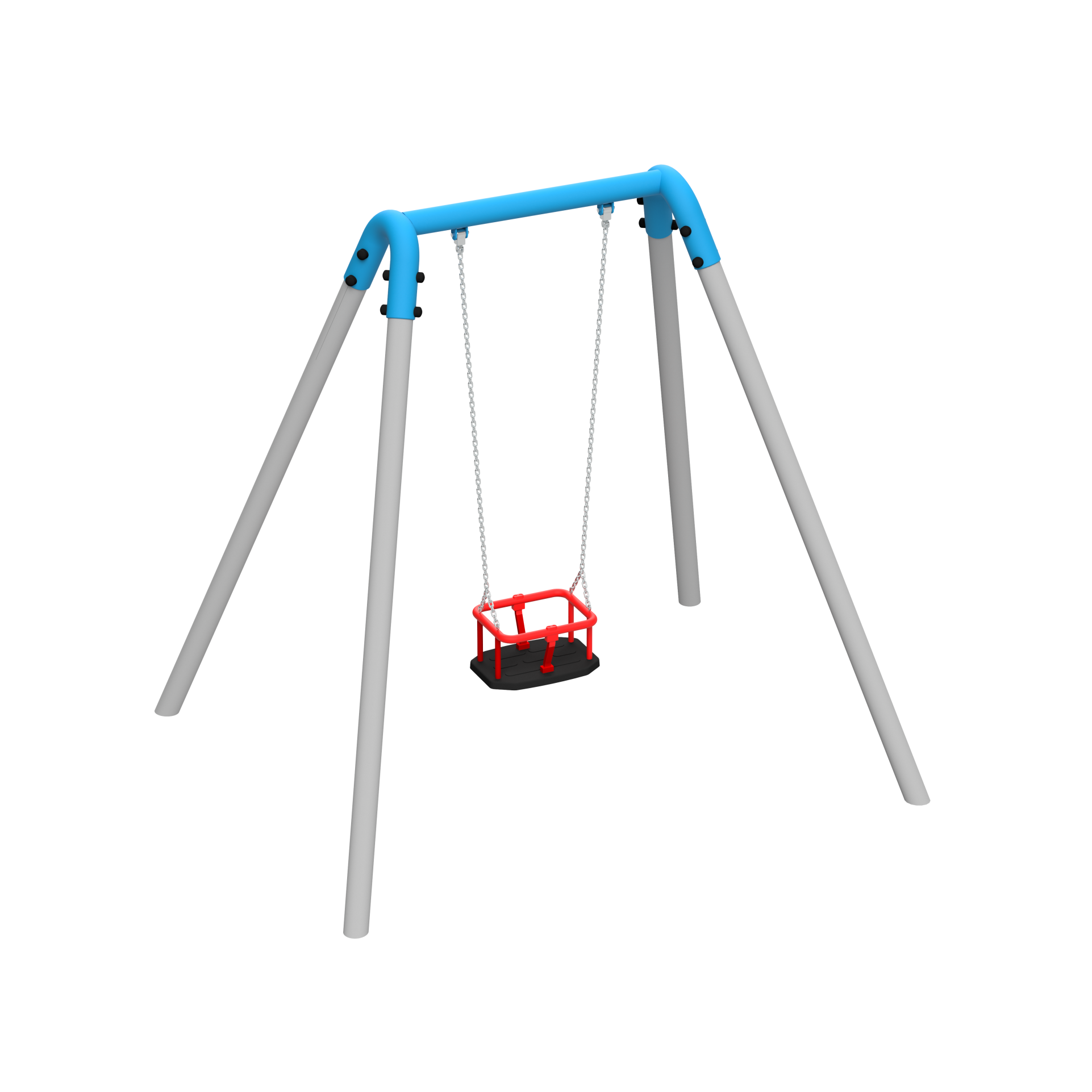 The single swing is a classic pendulum recreational device, designed for universal application on public playgrounds.