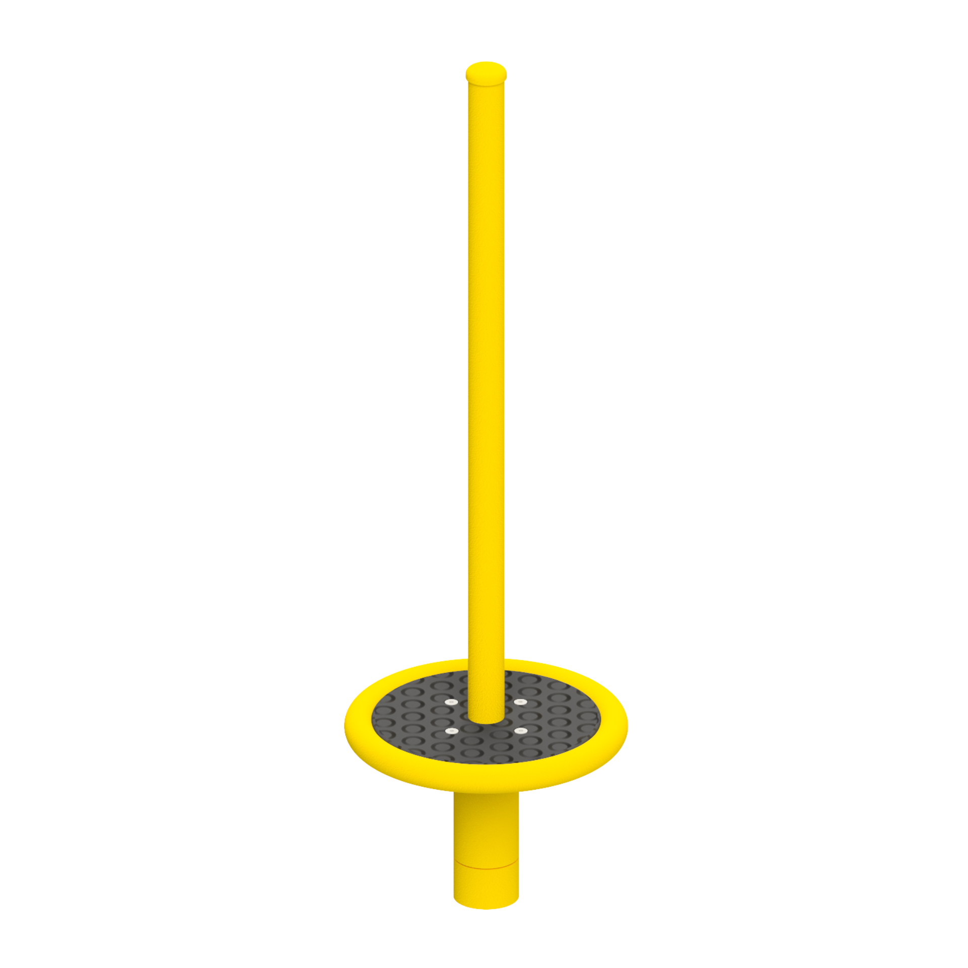 The central element of the Stellaris 2 carousel is a solid steel post enabling comfortable gripping and body stabilisation during play. At the top of the rotating mechanism there is an additional metal platform to which a durable, weather-resistant anti-slip HDPE disc with a raised dot system is attached.