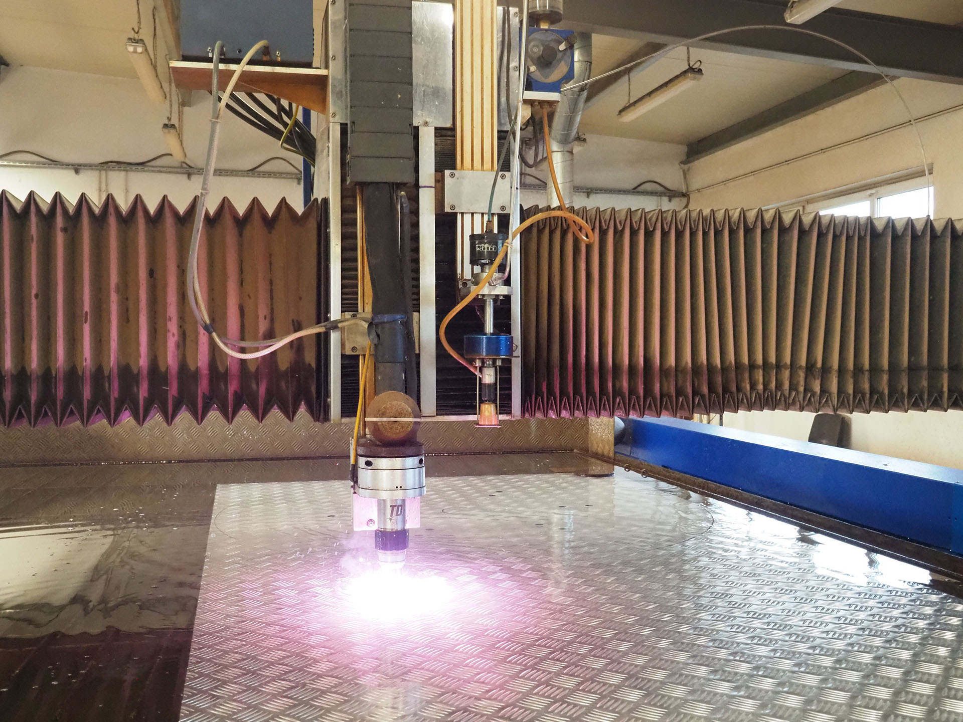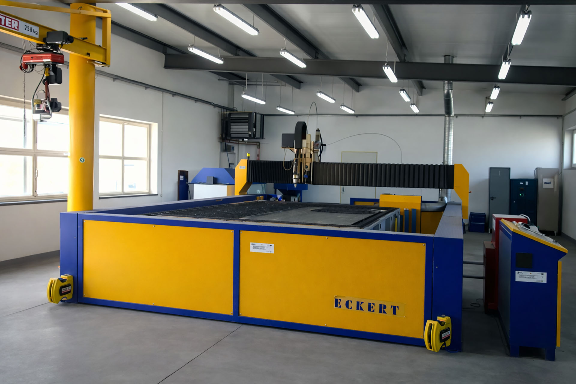 Complementing the Gold-Mark offering is an Eckert CNC Combo Opal center, which combines plasma cutting technology with precision water jet cutting (WaterJet). This allows us to offer comprehensive cutting services for external clients, enabling optimal technology selection based on material type, thickness, and required edge quality.