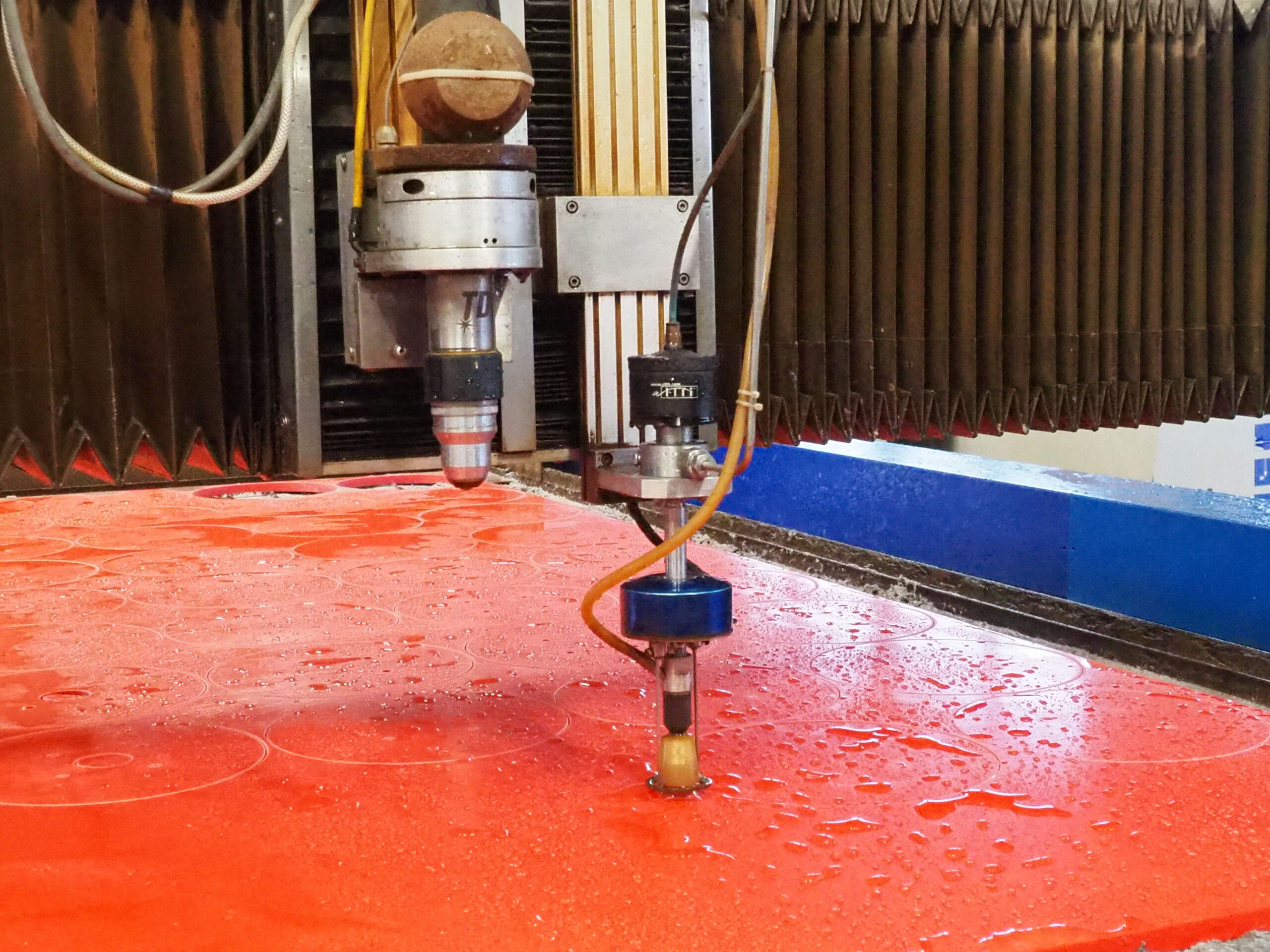 Abrasive water jet cutting is the most precise material separation method, performed without any heat impact on the workpiece. This means the material does not overheat, deform, or undergo structural changes.